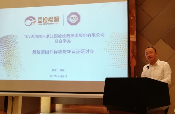 2017年10月19日“国检检测”携手TÜV SÜD在海盐联合举办“螺纹紧固件标准与CE认证研讨会”。此次研讨会有来自上海、江苏、浙江等地的十几家相关厂商参与。